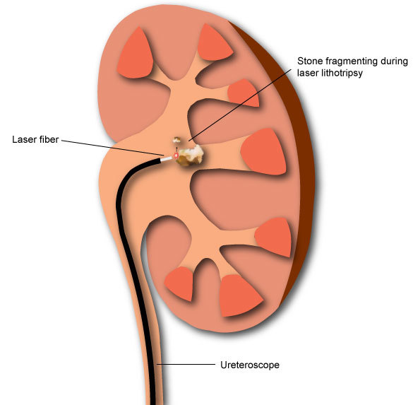 Laser lithotripsy is a highly effective method for treating kidney stones using focused laser energy. This procedure involves inserting a thin scope into the urinary tract to locate the stone. Once identified, a laser is directed at the stone, breaking it into smaller fragments that can easily pass through the urinary system. This technique is minimally invasive and can be performed under local or general anaesthesia. The use of lasers allows for precise targeting of stones while minimizing damage to surrounding tissues. Patients often go home the same day, experiencing less pain and quicker recovery compared to traditional surgical methods. Laser lithotripsy is particularly advantageous for stones that are hard or dense, which may not respond well to other treatments.